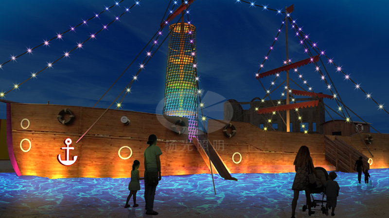 海盜船為兒童樂(lè)園中特色的游樂(lè)設(shè)施,燈光設(shè)計(jì)要營(yíng)造繽紛、熱鬧、歡樂(lè)、精致的氛圍。