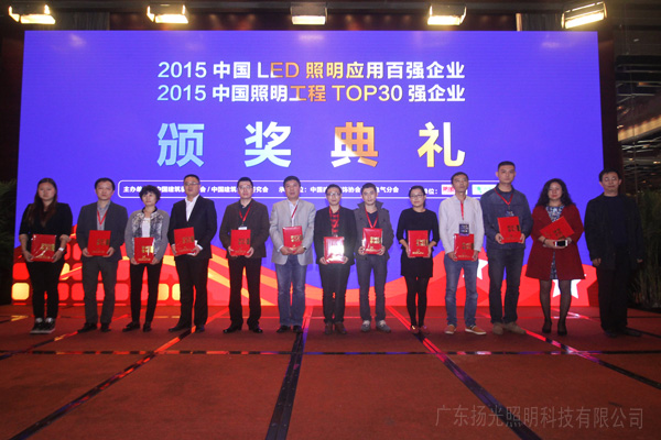 照明工程30強(qiáng)企業(yè)”頒獎(jiǎng)典禮在廣州隆重召開(kāi)。廣東揚(yáng)光照明科技有限公司在眾多候選企業(yè)中脫穎而出,成功獲得2015年度“中國(guó)