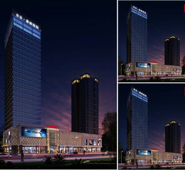 整體燈光以簡(jiǎn)潔大氣為主,裙樓商業(yè)以表現(xiàn)熱鬧而雅致的氛圍為主,用小壁燈和內(nèi)透搭配表達(dá),主樓立面用LED點(diǎn)光展現(xiàn),點(diǎn)光安裝于室內(nèi),見(jiàn)光不見(jiàn)燈:建筑頂部微微透出的燈光搭配著LED發(fā)光字,與航空障礙燈共同闡述遠(yuǎn)視的效果,整體燈光輕靈飄逸,簡(jiǎn)潔優(yōu)雅。