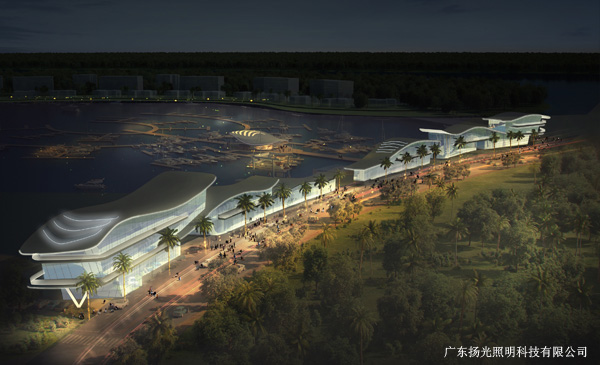 夜景照明工程之后,五一節(jié)前又傳來好消息,揚光照明成功中得海花島游艇碼頭、植物奇珍館和國際會議中心酒店夜景