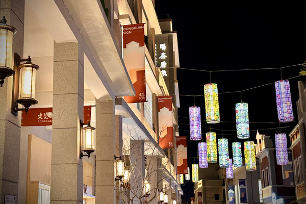 當(dāng)暮色降臨,東莞記憶的街巷褪去白晝的喧囂,一場(chǎng)跨越時(shí)空的光影對(duì)話悄然開(kāi)啟。青磚黛瓦的騎樓在暖金色燈帶的勾勒下舒展身姿,麻石街道被柔和的壁燈映出歲月的肌理,龍舟競(jìng)渡的圖騰投影在波光粼粼的河岸,與遠(yuǎn)處CBD的霓虹遙相輝映……這里,是東莞記憶首開(kāi)區(qū)的夜晚,亦是揚(yáng)光照明以光為筆、以文化為墨,為城市譜寫(xiě)的璀璨篇章。