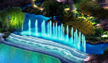 景觀照明設(shè)計是通過對人們在城市景觀各空間中的行為、心理狀態(tài)的分析,結(jié)合景觀特性和周邊環(huán)境,把景觀特有的形態(tài)和空間內(nèi)涵在夜晚用燈光的形式表現(xiàn)出來,重塑景觀的白日風(fēng)范,以及在夜間獨具的美的視覺效果。